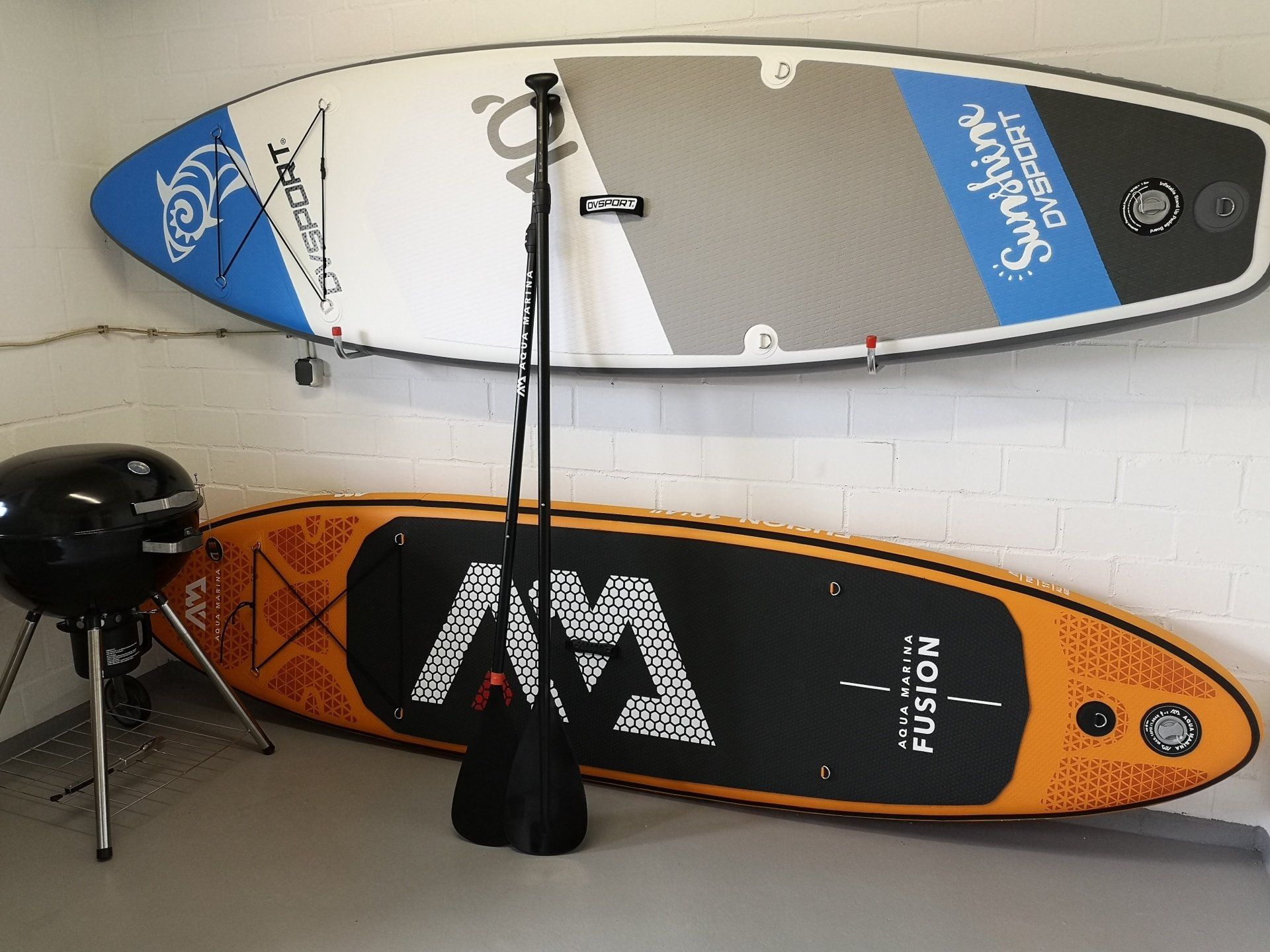 zur Ausstattung gehören 2 SUP Boards zur Benutzung durch die Gäste auf dem See.